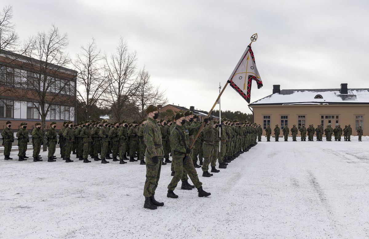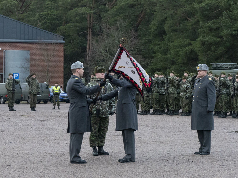 Uudenmaan jääkäripataljoonan perinnelippu tekee kunniaa