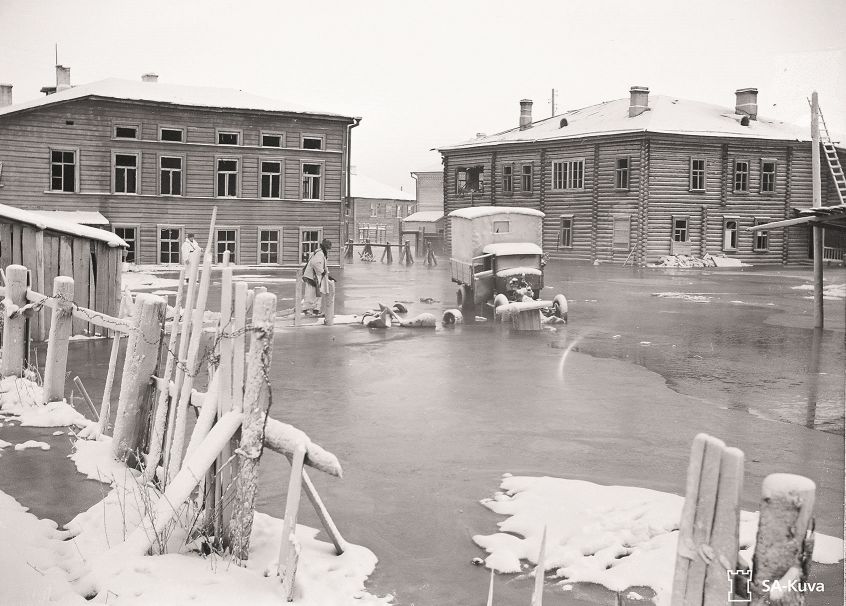 Tulvan valtaamaa Poventsaa joulukuussa 1941. SA-kuva.